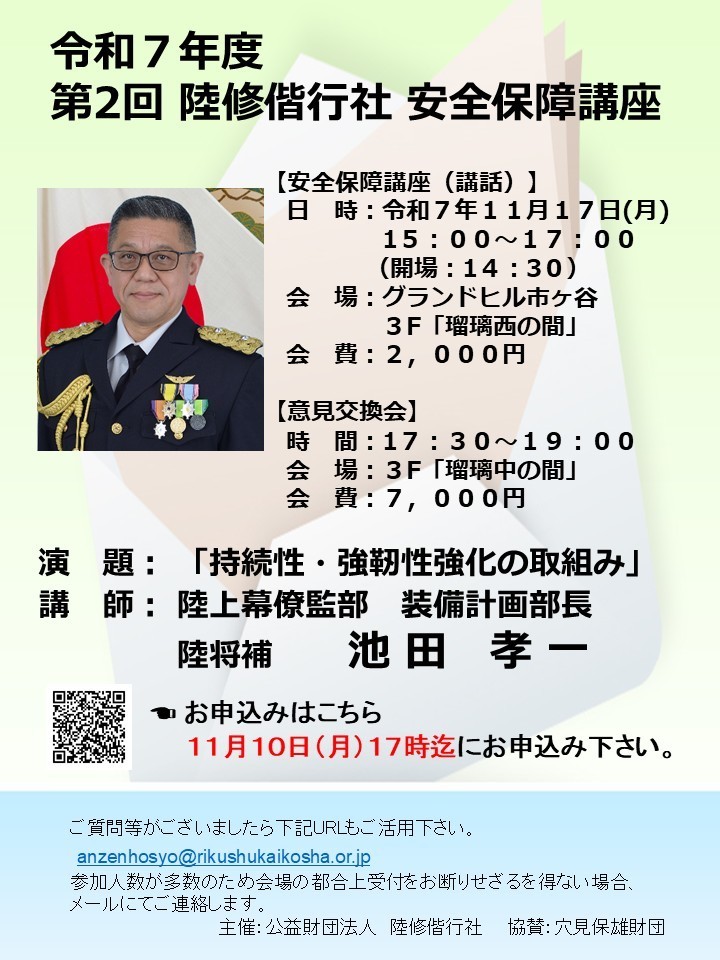 令和7年度 第2回 陸修偕行社 安全保障講座のご案内(開催終了しました)