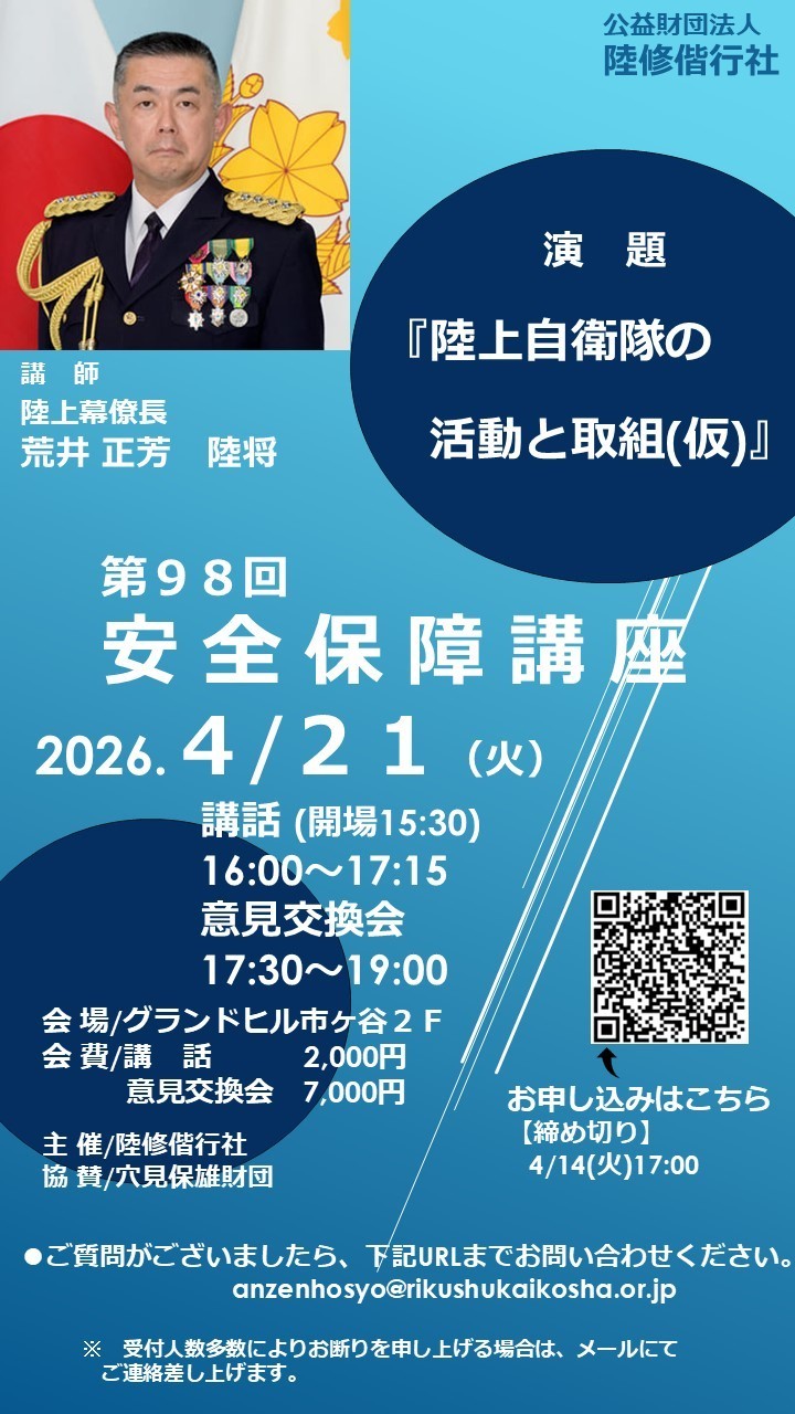 Special Lecture 安全保障講座のご案内(最終更新:3月13日)